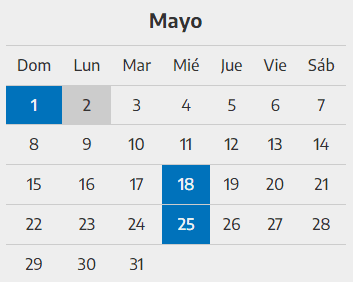 Días no laborables de mayo: 1